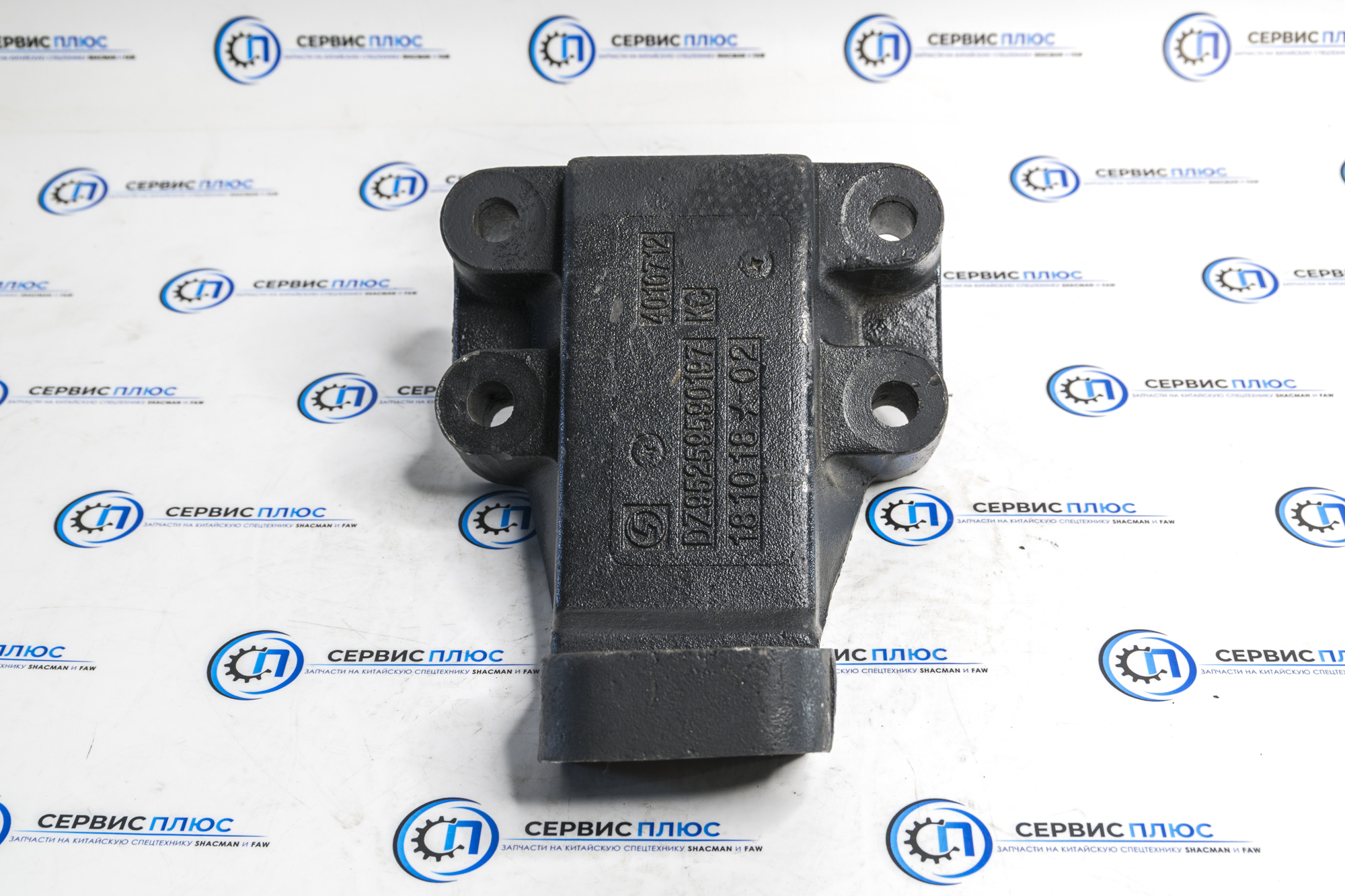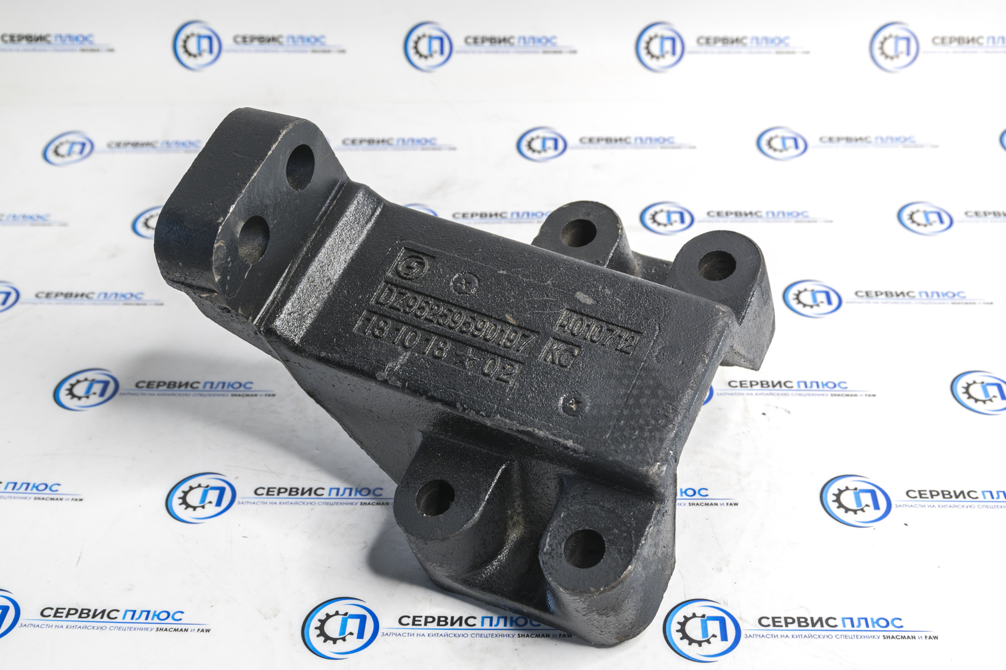 Оригинальный передний левый кронштейн двигателя для грузовика Shacman X3000 8X4. Артикул: DZ95259590197. Обеспечивает надежное крепление силового агрегата, соответствует заводским спецификациям.