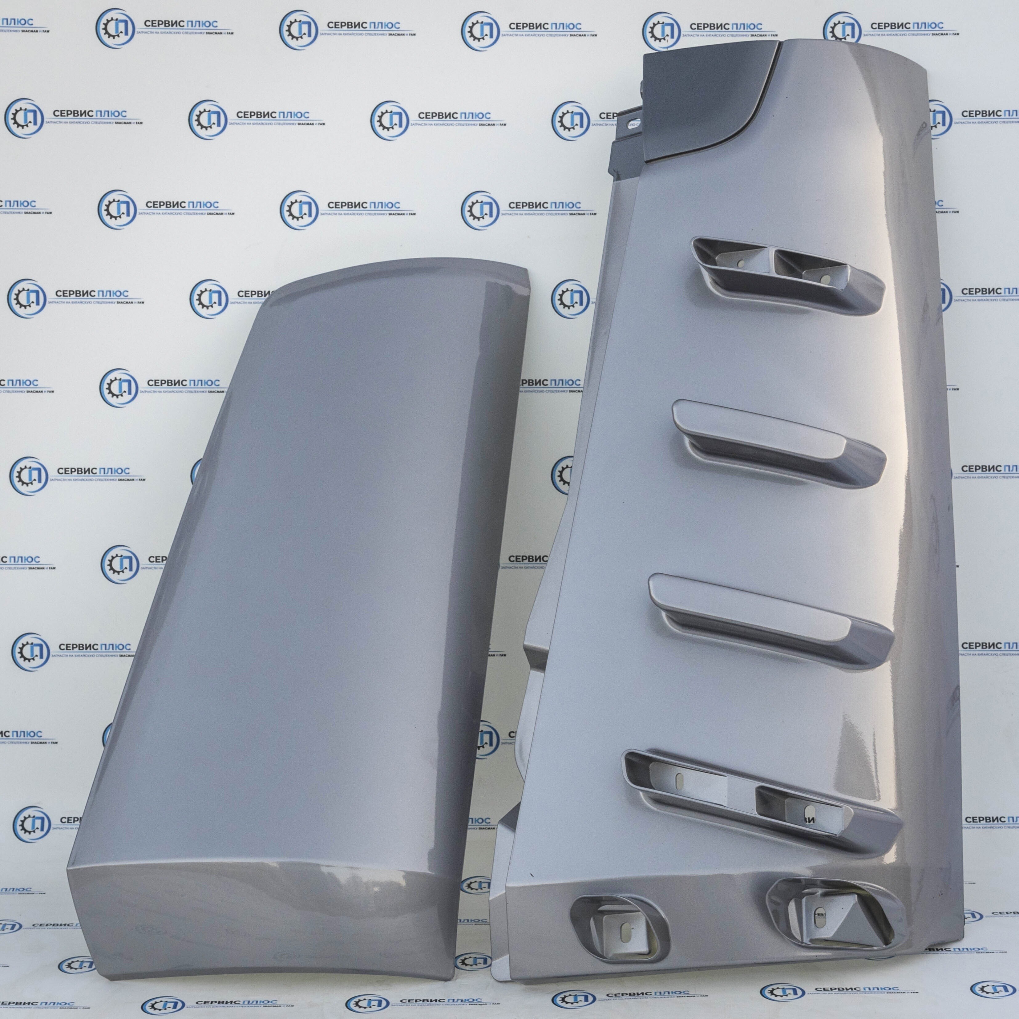 Оригинальный левый обтекатель кабины серого цвета в сборе для грузовика Shacman X5000. Полная заводская комплектация, артикул DZ14251110520. Улучшает аэродинамику и защищает кабину от загрязнений.