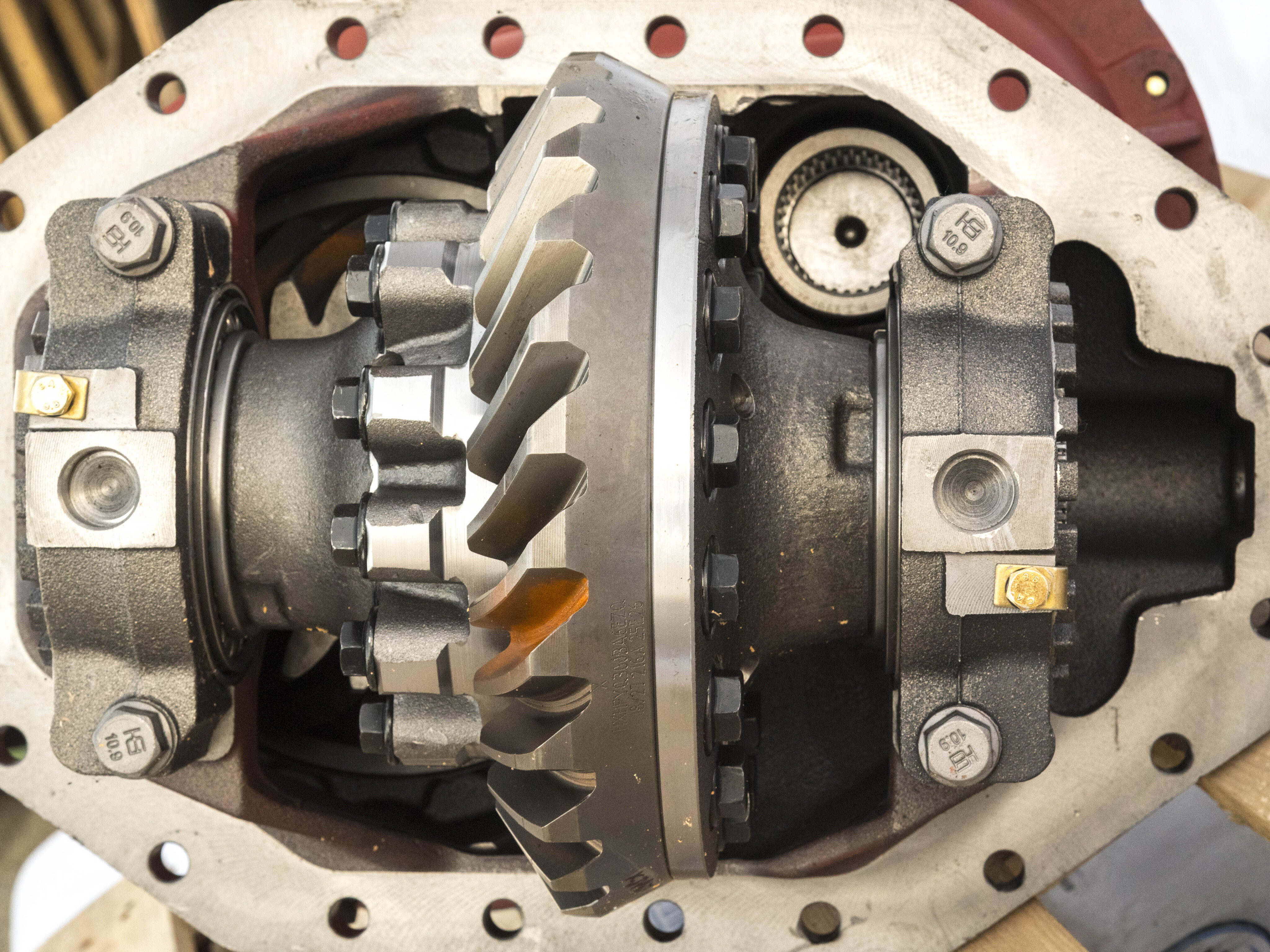 Запасная часть для грузовых автомобилей. Полная сборка редуктора среднего моста в сборе, готовая к установке. Совместима с моделями, для которых предназначен артикул 2502010ВА6Е/С 18/27. Обеспечивает восстановление работоспособности трансмиссии и ходовой части.