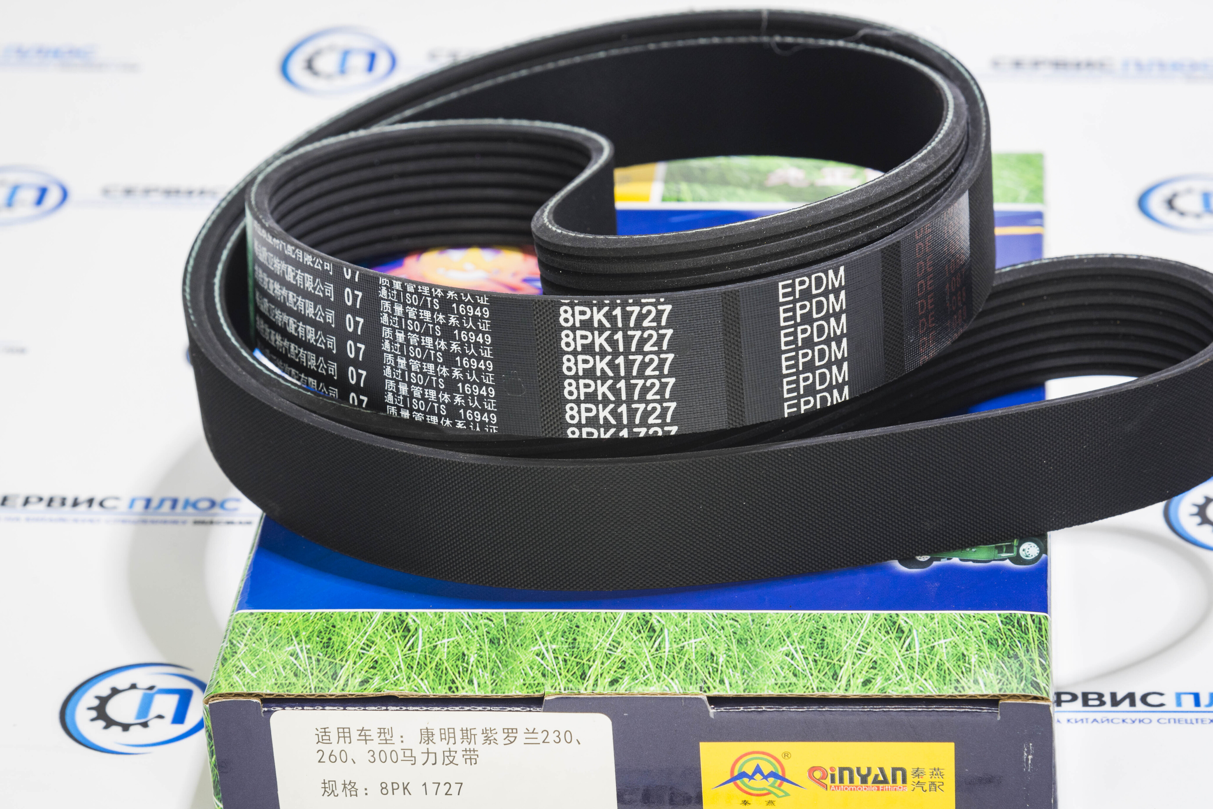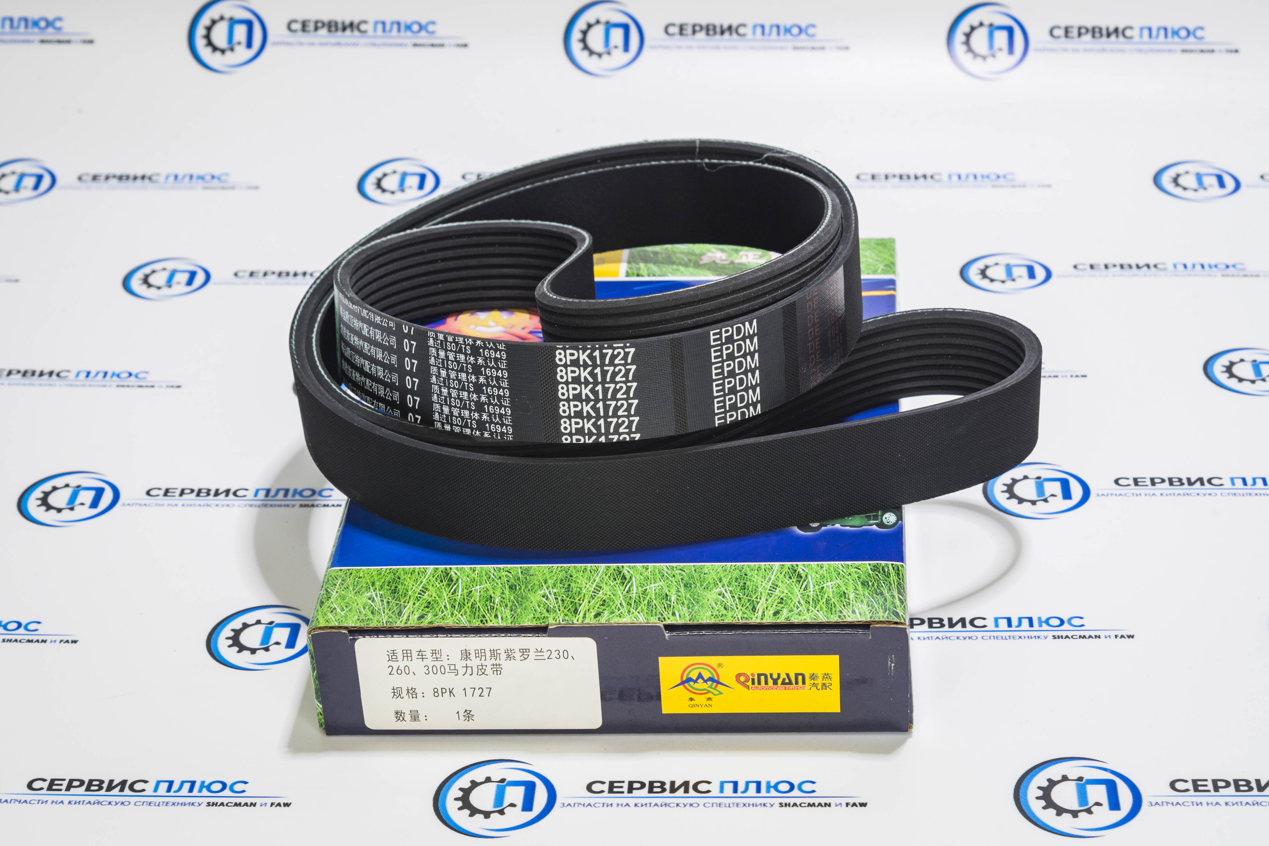 Ремень генератора 8РК1727 (C3288475, C3911620) Qinyan. Совместим с моделями автомобилей, требующими данные артикулы производителя. Обеспечивает надежную передачу крутящего момента и стабильную работу генератора.