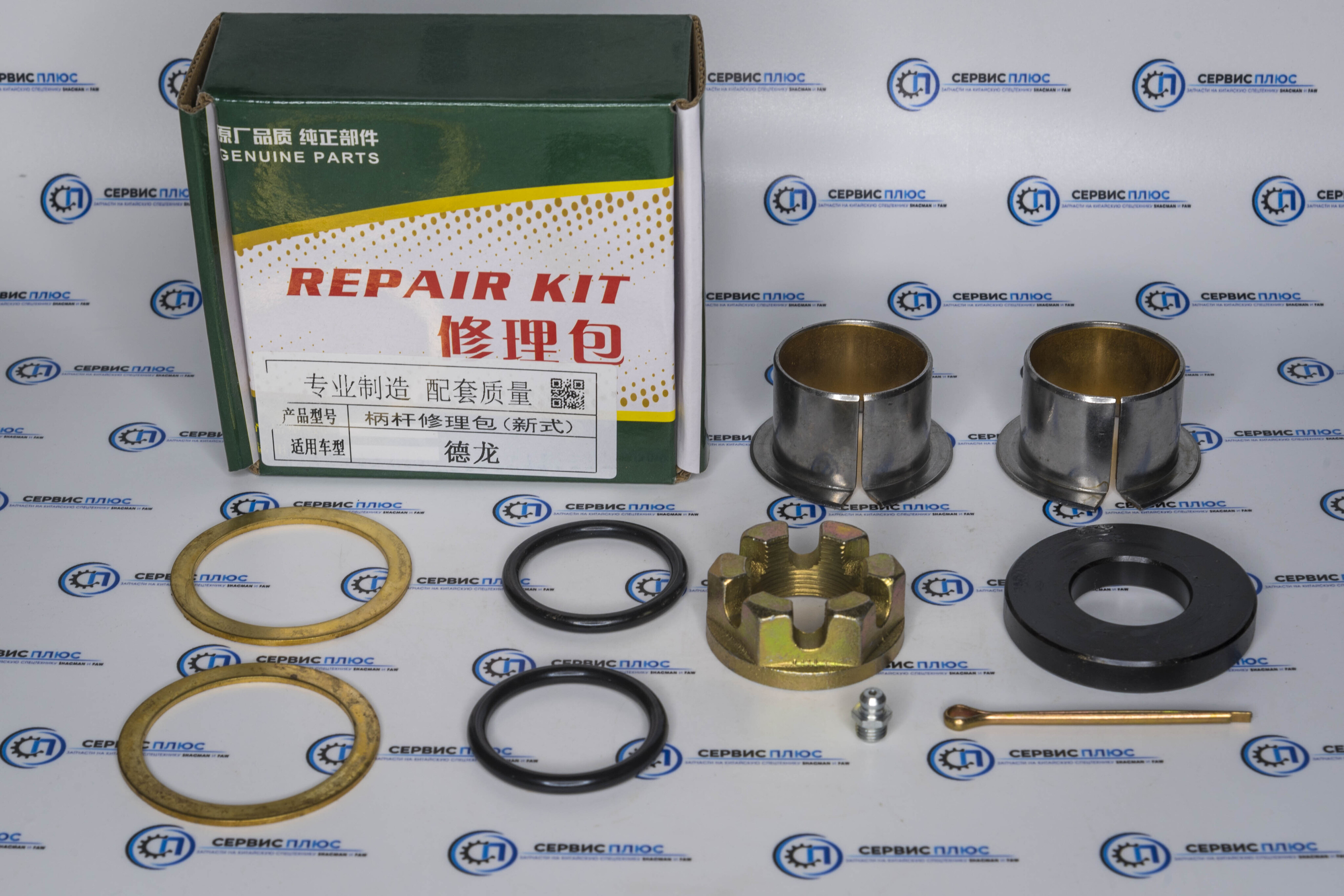 Ремкомплект для восстановления маятниковой втулки подвески Shacman F3000/X3000. Включает гайку и шайбу (размер 8x4). Оригинальный артикул: 81.90713.0837. Обеспечивает надежное крепление и стабильность рулевого управления.